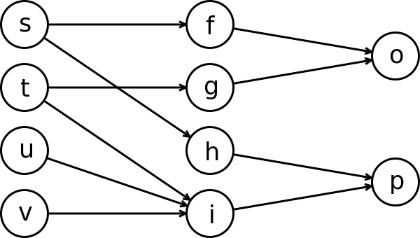 That is, in all arguments attack \(f\) and \(g\). It can be seen that in this case \(\{s, t, h\}\) is an admissible, grounded, preferred and stable extension. It is interesting that \(s\) and \(t\) are accepted when they support (and attack!) non-accepted arguments \(f\) and \(g\) respectively. As will be seen below, this is remedied by additionally adding the super-mediated attacks.